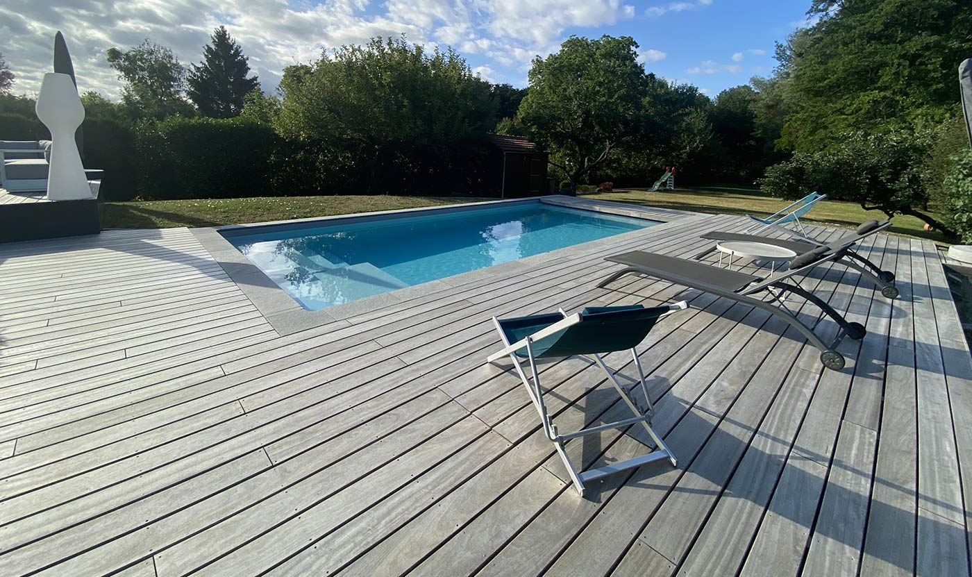 Le choix d’un matériau comme le bois exotique apporte non seulement une esthétique chaleureuse, mais aussi une durabilité remarquable face aux intempéries et aux projections d’eau chlorée. De plus, la terrasse autour de piscine offre un accès pratique et sécurisé à votre piscine, tout en délimitant l’espace pour préserver l’intimité.